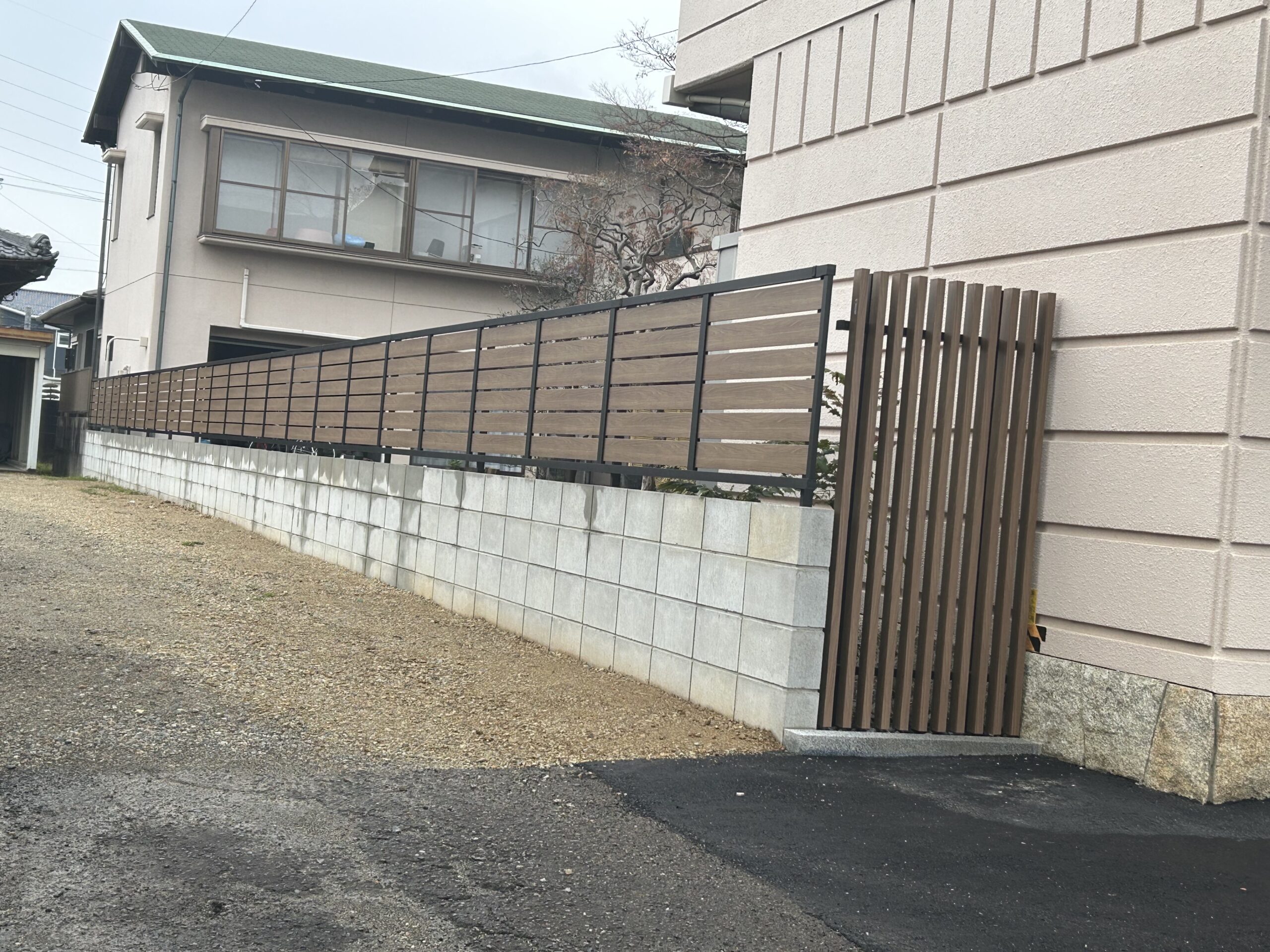 塀の基礎部分は化粧ブロックで仕上げ、強度と美観を両立させています。